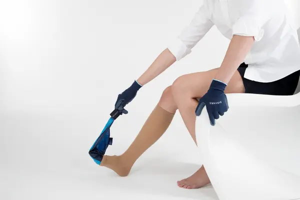 Neben Gummihandschuhen stehen Ihnen zahlreiche alternative Anziehhilfen zur Verfügung. Durch sie gleitet der Strumpf mit noch weniger Kraftaufwand und fast ohne Reibung über Ihren Fuss bzw. Arm. Für detaillierte Informationen zu geeigneten Anziehhilfen stehen wir Ihnen gerne zur Verfügung.